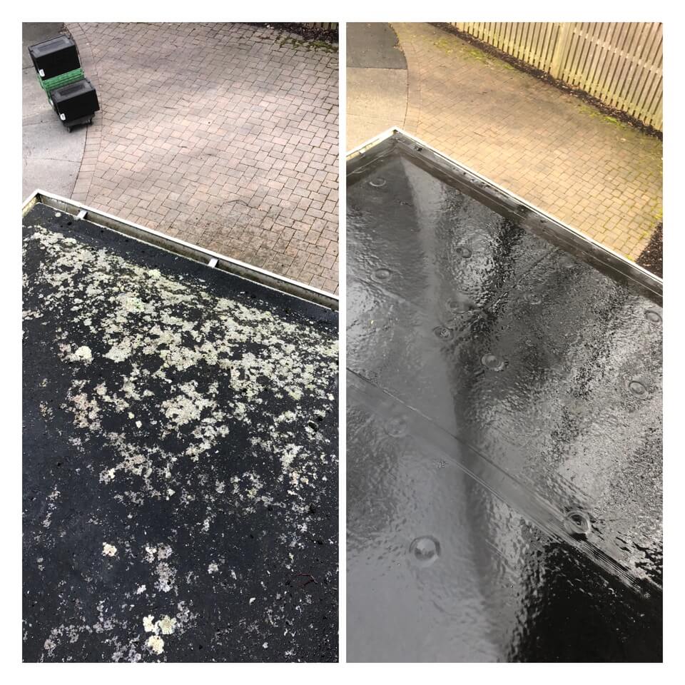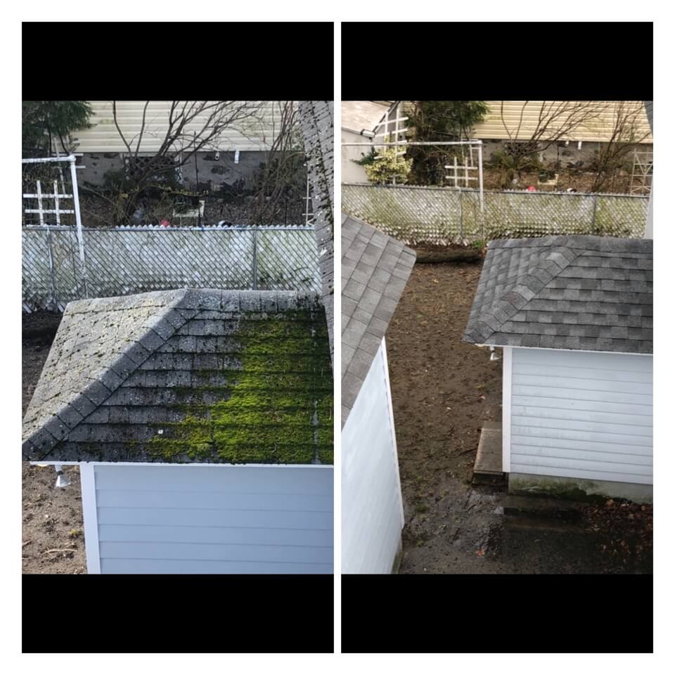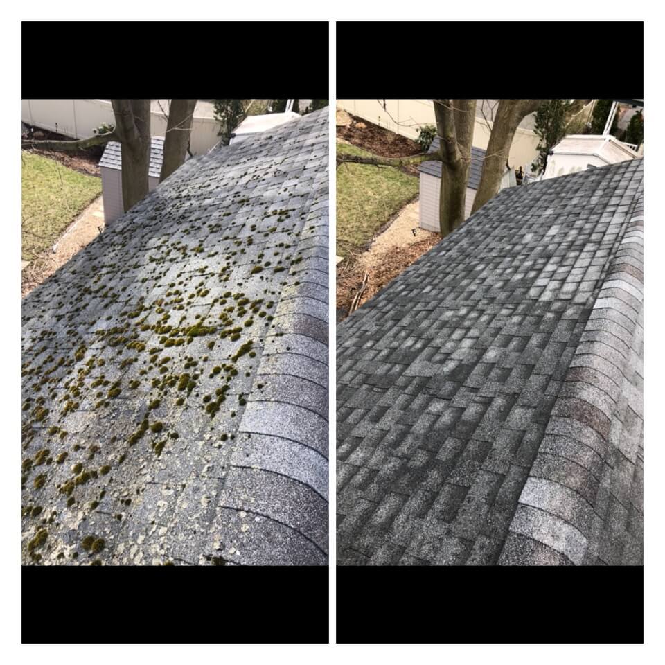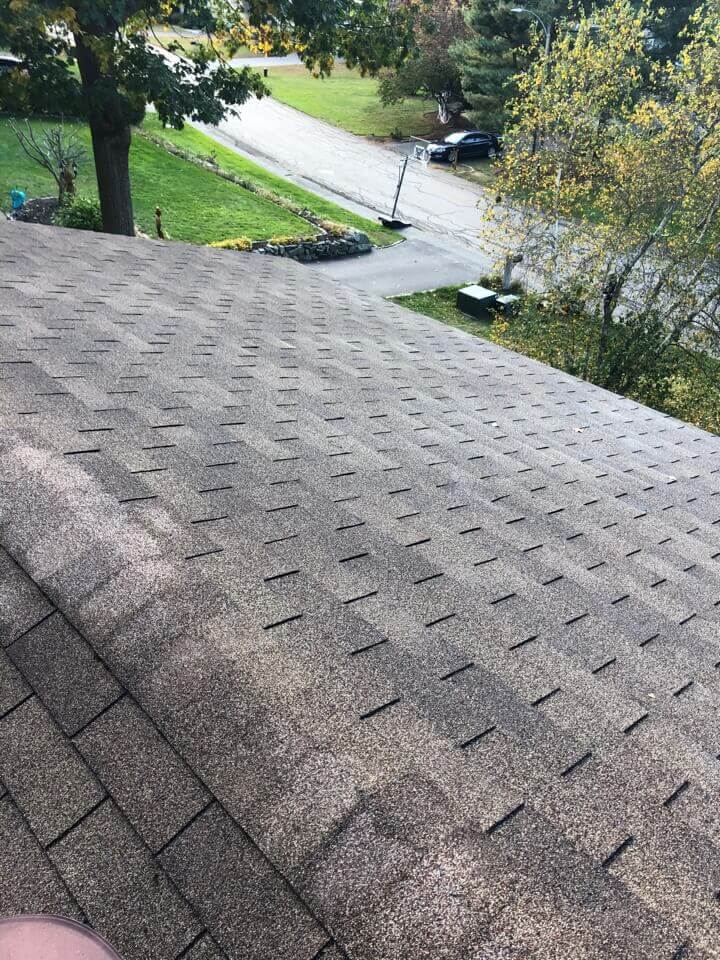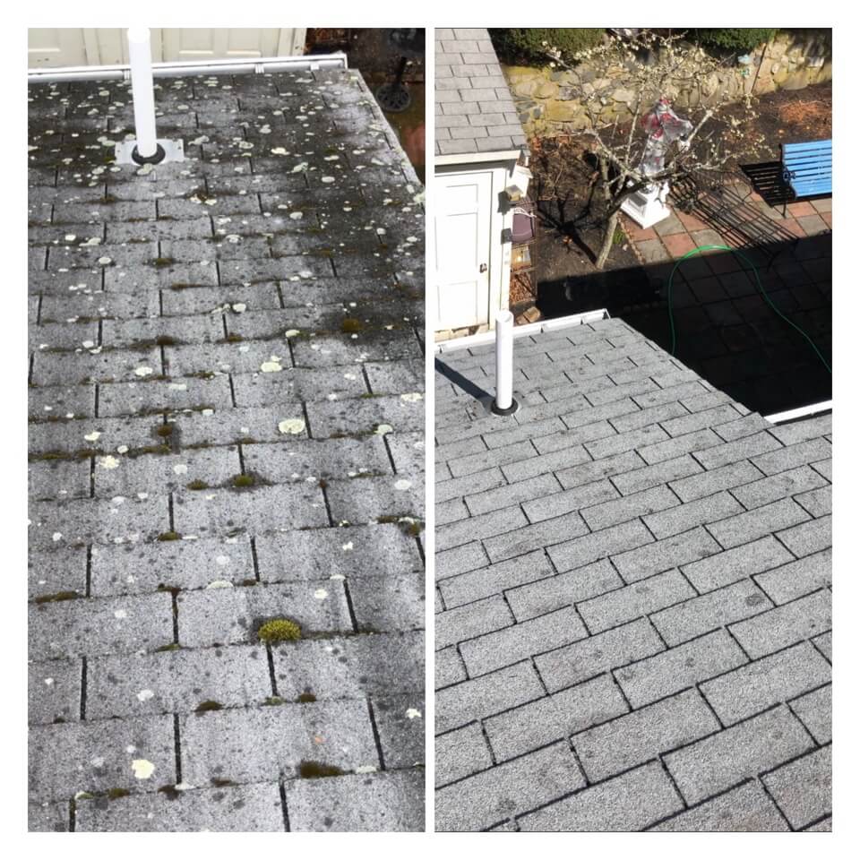 HiCleaners is the most experienced company in Sharon, MA that deals with roof washing and roof soft washing. All of our employees are trained to recognize precise solution mixing ratios to provide you with the safest and most effective soft washing service. Roofs are a commonly neglected part of a house due to the fact that most people don’t have ladders to access it, so it is very easy to just leave it alone and forget about problems that may start to arise. Just like many home owners, discoloration and small bits of moss on a roof can be overlooked because of the misconception that it is just aesthetic. However, it isn’t just aesthetic, the moss slowly lifts the granules off the shingles which in turn shorten the life of the shingle. The moss also spreads, just like any bacteria if it is left alone for too long, it can quickly become a problem that spirals out of control. Call HiCleaners for a free quote, we only use the most advanced eco-friendly solutions and equipment to make sure the job is done right, for the safety of the employees, your plants, grass, pets, and children.